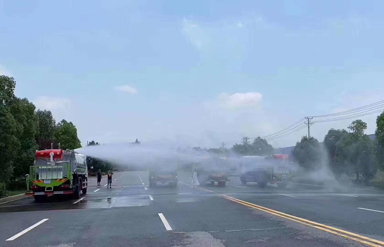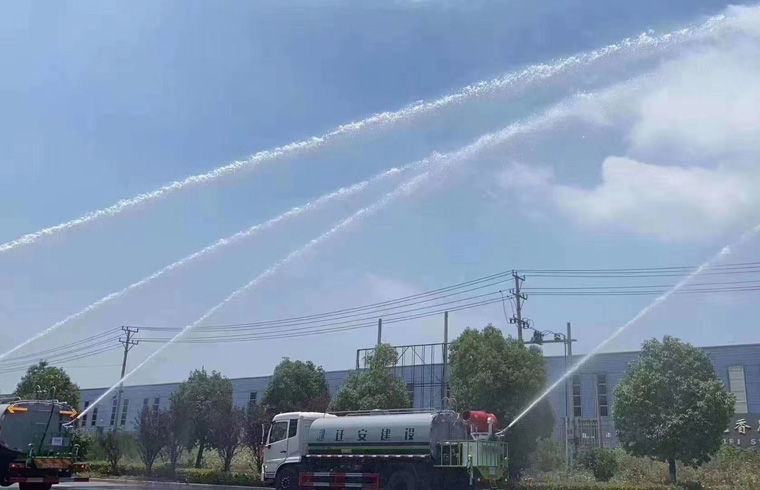 装配置:罐体容积12立方,罐体为方圆形罐,罐体钢板采用Q235碳钢钢材,整车具备洒水车的一切功能(前冲、后洒、侧喷、平台高炮),标配亿丰60/90水泵,自流阀及消防接头各1个、水管2根。后平台安装一台30米雾炮。